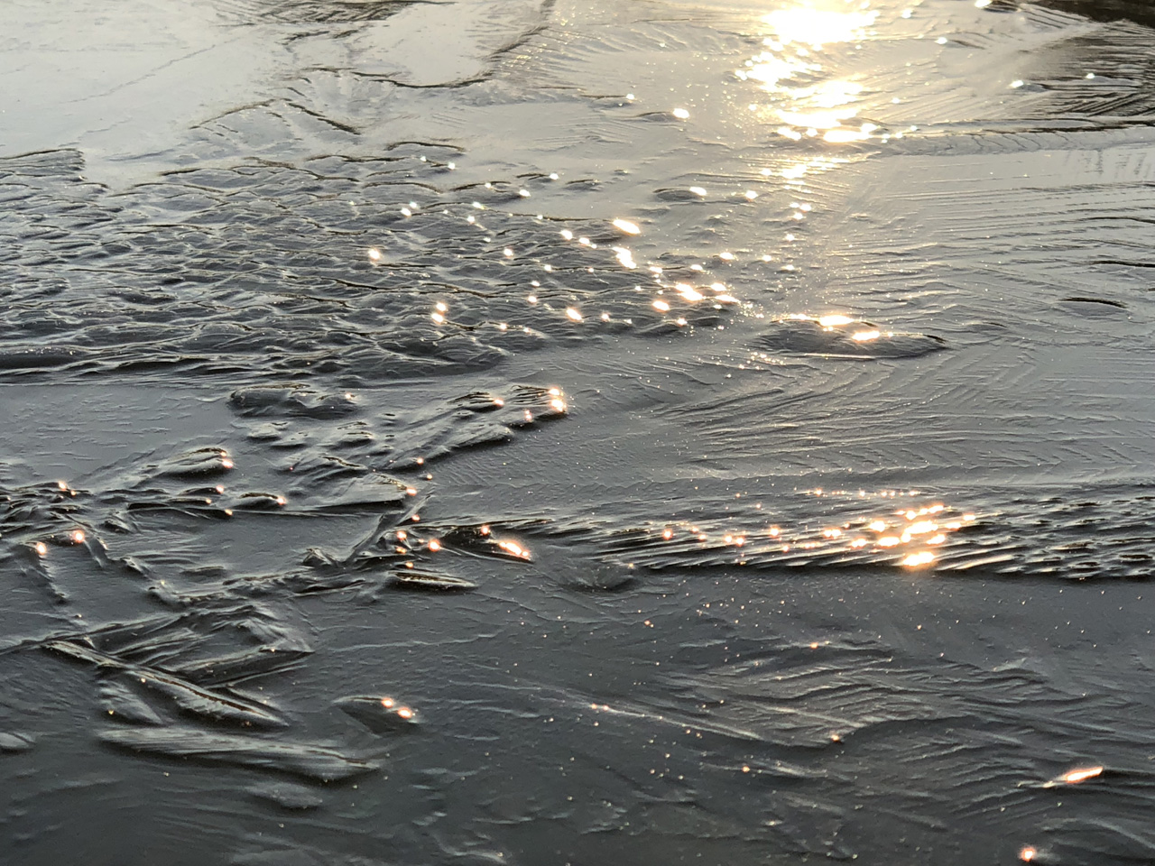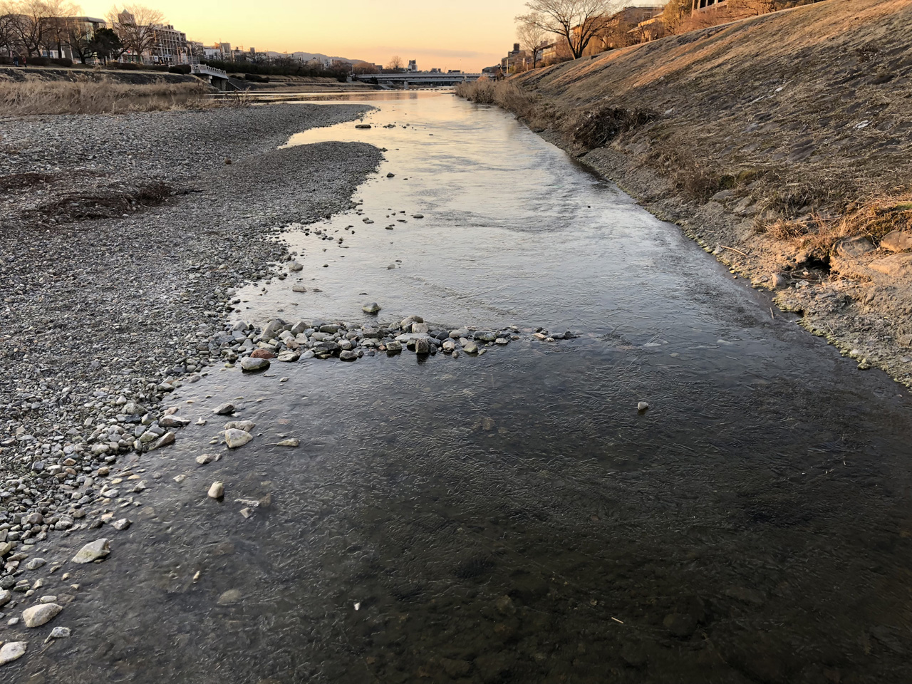 鴨川に出てみると、案の定、いつもの場所が凍っていた。