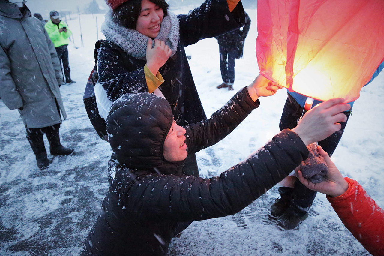 ランタンの下に火をつけて、上空に向けて飛ばす催し。村の人が中心になって行われている、こじんまりしたイベントです。